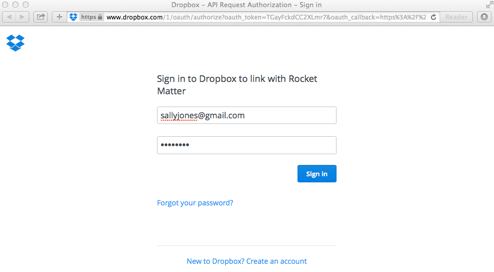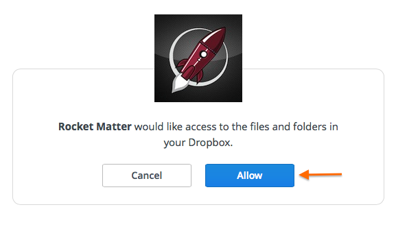 Next, click ‘Allow’ to authorize Rocket Matter to access your Dropbox files and folders.