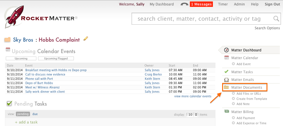 Now that you have configured your Dropbox integration, the next step is to navigate to the ‘Matter Documents’ section of a matter.