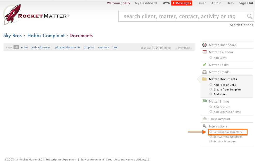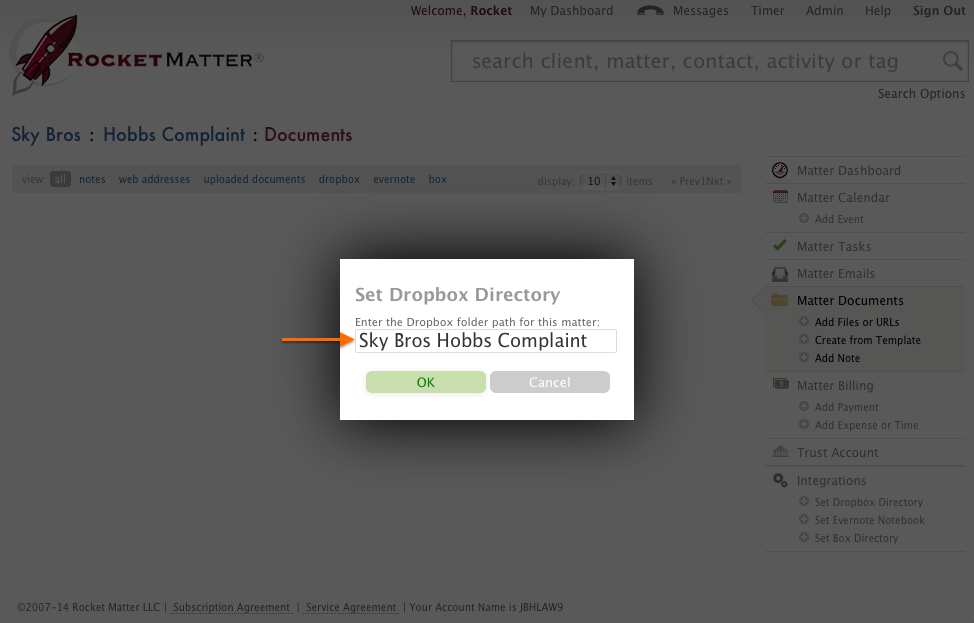 Once you’re on the Matter Documents page, click ‘Set Dropbox Directory’ where you’ll be prompted to enter the folder path from Dropbox.